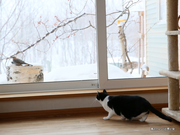 カボチャをついばむヒヨドリにマーボーが迫って行く様がおかしくて。