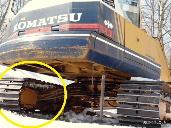 調子こいて作業してたらバックホーのこまっちゃんの鉄下駄が外れた。