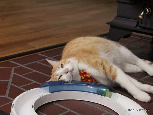 うんうん、今日もお気に入りの輪っかオモチャの枕♪ 可愛い「まっちゃん」なのでした~❤