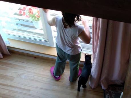 2009年10月10日 一夜明けて・・・ 昨晩は台風の影響で結構な風が吹いた。 ビュービューと換気口から聞こえる風の音に 「何の音?」と首をかしげるクー。 何度か強風を経験しているのでクーは余裕の表情。 で こちらの黒い物体は オトスケのシッポ。 風の音が怖いのか 頭隠して尻隠さず状態。 一 ... カテゴリ : 猫 コメント( 4 )