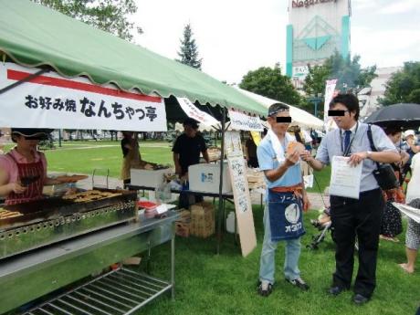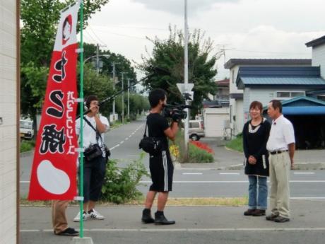 25日の夕方 外が ざわざわしているので見てみるとキャスターの荘司典子さんと 岡部幸雄さんがテレビの収録始めてますやん。 なんちゃっ邸で馬の3姉妹の堆肥を使って野菜を作っている所を見てもらった流れで なんちゃっ亭のお好み焼に使用しているのを 来店して試食す