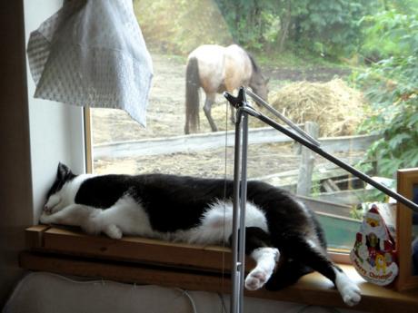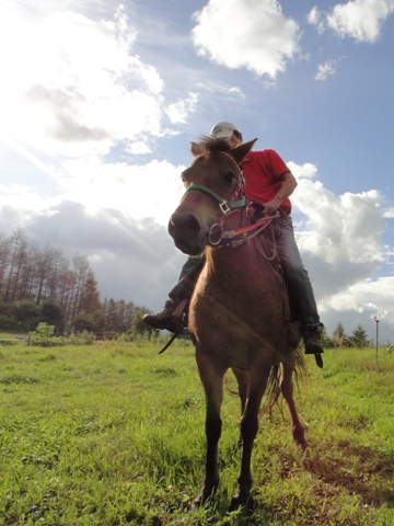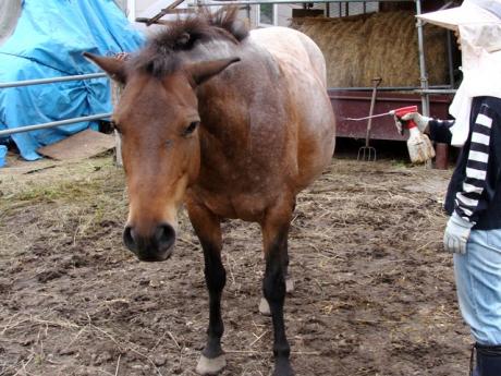 昨日の続き 岡部幸雄さんに声をかけられながらグルグルと同じ所を連れまわされたマロン。 これは馴致(じゅんち)といって調教以前の作業とのこと。 過去に何度か調教を受け乗馬できるようになっていたのだが 忙しくてかまってやれず 普段喰っちゃ寝しかさせていなかった
