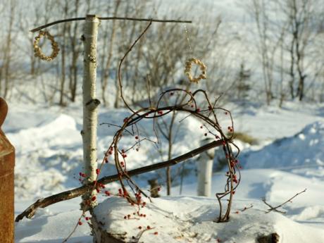 2011年01月11日 模様替え 野鳥の餌台が ちこ太郎によって模様替え&飾り付けられた。 殻つきの落花生を円状に編んで2か所からぶら下げ ツルウメモドキのつるを輪にして雪に立てた 赤い実がアクセントになってきれい。 さっそく赤い実をつまみに来たヒヨドリ夫妻。 いつも一緒に行動している仲 ... カテゴリ : 日記 コメント( 1 )