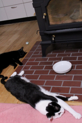 2011年12月17日 不満あり オトスケが体調を崩してたのはほんの数日前のこと。 その時は薪ストーブ前の特等席はクーのモノであった。 ココをクリック 体調がよくなると当たり前のように戻ってきたオトスケ。 オトスケの後方で肩を怒らせて不満そうな態度ありありの白黒ニャンコ。 仲良く半 ... カテゴリ : 猫 コメント( 1 )