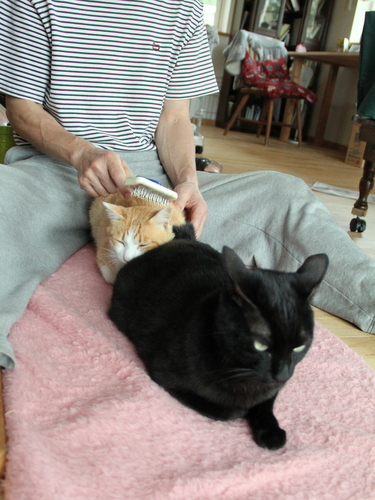 2012年07月04日 黒いかたまり ブラッシングの順番が3番手の「まっちゃん」。 先に終わった2番手のオトスケがどかないので重なってしまっている。 上から見るとこんなカンジ。 気持ちよさそうに目を閉じている「まっちゃん」だが 気持ちいいのはブラッシングなのか オトスケの ... カテゴリ : 猫 コメント( 18 )