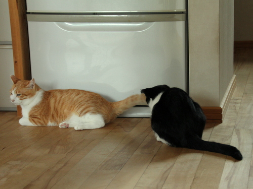 2013年08月10日 厳しい一面 マーボーを自分のしっぽを使って遊ばせてやってる「まっちゃん」。 上へ下へ動くしっぽに興味津々。 マーボーの牙が見える 嫌な予感・・・ ガブッ! で「まっちゃん」の目が変わった。 何しとんじゃ おるぁ~っ! ... カテゴリ : 猫 コメント( 28 )