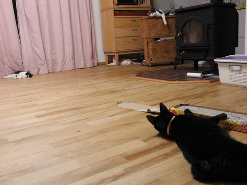 2013年08月24日 一瞥 朝 カーテンを開けたら一同 窓の外に注目。 最近黒猫が薪棚に居る確立高いんよなぁ・・・ (ノω`*) が 一瞥をくれただけで 皆 日常の生活に戻っとる。 (; ̄ω ̄A`` マーボーにいたっては近づいていたのに踵を返しとるやないか。 結構ドラ ... カテゴリ : 猫 コメント( 21 )