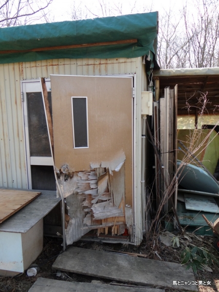 2014年04月27日 やっつけ仕事 数年前にもらってきた小屋。 何年か前からドアが壊れ始め いよいよギブアップしよった。 仕方なく廃材を切って取り替えてみた。 遠くから見ると 意外とイケルやん。 ドアノブが無いので枝を取り付け なめたカンジの鍵もつけてみた。 な ... カテゴリ : 猫 コメント( 23 )