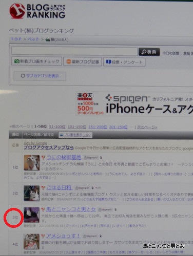 2014年04月07日 銅メダル 馬ニャンブログ開始から3000日経ってたって? 知らんかった。 教えていただいてありがとう。 ニャンコ部門の人気ブログランキングが3位になってるって? ホンマや~ 記念に写真撮っとこ。 ブログを始めて丸8年 まさかここまでこれるとは ... カテゴリ : 猫 コメント( 59 )