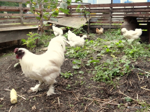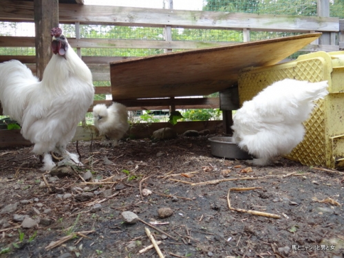 2014年09月13日 女子は・・・ 2階には「社長」。 1階の右からマダム・千春・チャコちゃん この3羽の結束は固い。 なので「社長」も無視されてることが多々見受けられる。 かわいそうなのがヒナ。 ケージの扉が空いてるのに出てこない。 今日はマダムと千春につつかれていたのでイ ... カテゴリ : 烏骨鶏 コメント( 11 )