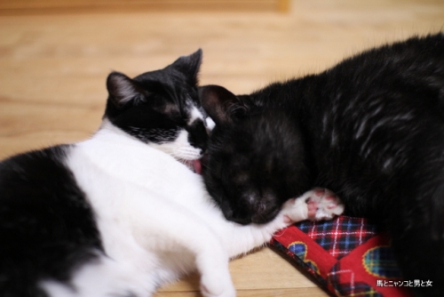 2014年09月22日 女心と マーボーに腕枕をしてもらい頭ペロペロしてもらってる「なかむら君」。 お礼にペロペロしようとしたら・・・ ダメよ~ダメダメ! 女心と秋の空 女心は難しい。 (;´Д`) ブログランキングに参加してます。 下のバ ... カテゴリ : 猫 コメント( 11 )