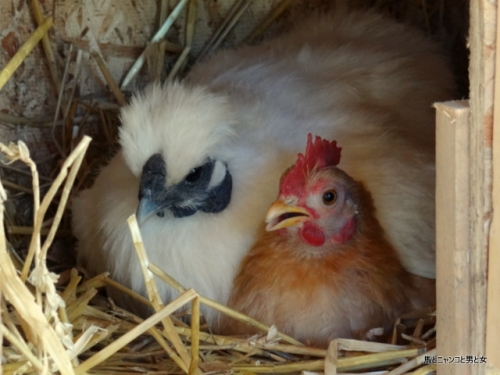 2014年09月08日 明日になれば は? 何やってんの? 狭い箱の中で寄り添う烏骨鶏の千春とチャボのチャコちゃん。 よく見るとチャコちゃんが千春の翼の下に居る。 チャコちゃんが甘えて潜り込んだのか 千春が守ってやろうとしているのか? 何とも微笑ましい2羽である。 ... カテゴリ : 烏骨鶏 コメント( 20 )