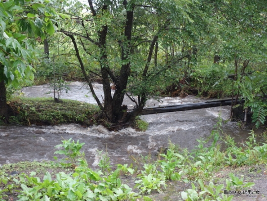 2016年08月31日 氾濫注意報 午前中はまだ笑ってられた沢の増水。 丸太の橋の下にも余裕があった。 昼から馬小屋の横まで見に行ったらこの有様。 普段 沢の幅は150cmほどなのに・・・ 向こう岸と面一になっとる。 これが氾濫注意報ってことね。 丸太の橋と水面の間がかなり狭くなって ... カテゴリ : 日記 コメント( 74 )