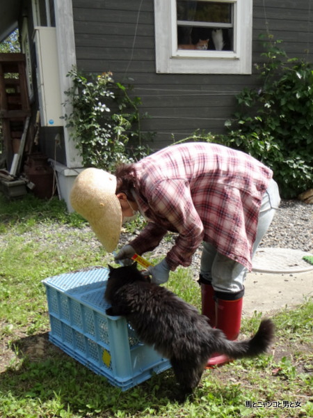 2016年08月12日 誰じゃっ! 朝5時 烏骨鶏ズが一斉に騒ぎだした。 キタキツネでも現れたのか と寝ぼけ眼で外に出た。 と そこに「なかむら君」らしき背中が・・・ 頭が回ってなかったので「なかむら君が逃げた」と脳みそが判断。 捕獲の為 手袋を取りに戻ったら「なかむら君」は在宅。 「じ ... カテゴリ : 猫 コメント( 47 )