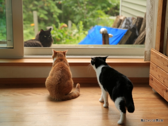 2016年08月15日 グル 朝ご飯を食べてたら 窓の外が暗くなった。 と 「まっちゃん」・「なかむら君」・クーが窓辺に走った。 「うわ~ 来た~っ!」 (゜Д゜;ノ)ノ 網戸越しに初の御対面。 あの顔がデカい「なかむら君」が小っさく見える。 でも・・・ お互い 何で 「シャ ... カテゴリ : 猫 コメント( 47 )