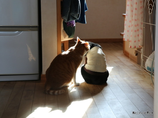 2016年12月28日 別世界 これまた珍しいオトスケ&マーボーのツーショット。 服を着たらスーパーマンのように強くなった気になるのかオトスケが堂々としている。 が だんだん目つきが怪しくなってきた・・・ 別世界へ行きかけてるのか? 「オトスケ~ 帰ってこ~いっ!」 ブログランキング ... カテゴリ : 猫 コメント( 8 )