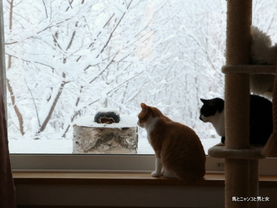 2016年12月07日 一緒に 朝起きたら雪国だった。 悪天候でもカボちゃんが現れることを祈る「まっちゃん」&マーボー。 風も強く プチ吹雪。 高速道路があちこちで通行止めになってるとラジオが伝える。 こんな日の為に脂肪を蓄えてきたマロン&プリンは余裕のウトウト。 ストーブ前で「まっち ... カテゴリ : 猫 コメント( 10 )