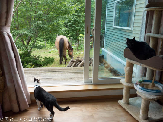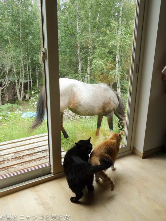 2018年07月31日 夢のような なんちゃっ邸の裏側を除草するマロンを目で追うクー&オトスケ。 視線に気づいたマロンが振り返った。 スタスタと近づいてきてクーに挨拶。 ちこ太郎と大阪から移住して27回目の夏。 思い返せば3回の転職 7回の引っ越しといろいろあったが 家の中から馬が見られる ... カテゴリ : 馬 , 猫 コメント( 19 )