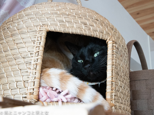 2019年03月31日 いつも一緒 猫ちぐらの中からオトスケの「困った感」漂う目。 茶白のしっぽが出てる。 てことは この狭い空間に「まっちゃん」も入ってるってこと。 オトスケがごはん食べてゆっくりしたいところに乱入したみたい。 大好きなオトスケとくっついていられると満足顔の「まっちゃん」。 ... カテゴリ : 猫 コメント( 10 )