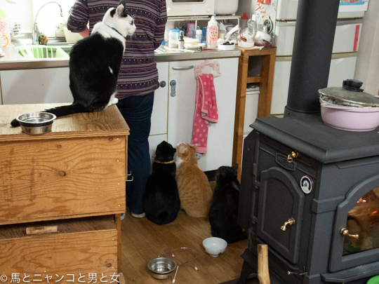 2019年10月18日 5猫5様 晩ごはんくださいの図。 オトまつコンビは「腹ペコで死にそうです〜。」と必死。 一歩下がって低い声でおねだりする「なかむら君」。 一段高いところで悟りをひらきながら待つクー。 マーボーはというと少し離れた所で「くれるならもらうけど。」 5猫5様の待ち方 ... カテゴリ : 猫 コメント( 18 )