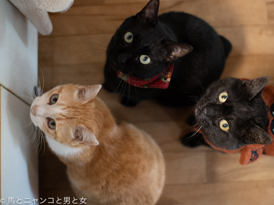 2020年06月10日 ちこ太郎目線 ニャンコ達の朝ごはんの準備中。 ちこ太郎目線で足元を見るとこんなカンジ。 「何日も食べてません」的な目つきの皆さん。 結構太ってるように見えますけどなぁ。 マーボーは少し離れたところで遠慮がちに待ってるのがかわいい。 クーはマイペースなのでこういう集まり ... カテゴリ : 猫 コメント( 11 )