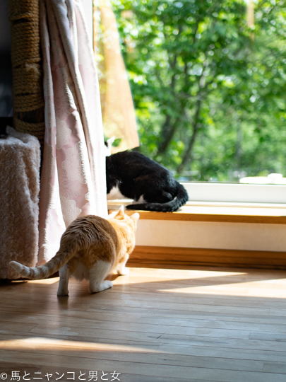 2020年06月11日 やっぱり いつものように取っ組み合いしてるオトまつコンビ。 と 窓の外を何者かが横切ったのをオトスケが気付いた。 ネズミですな。 「まっちゃん」を放ったらかして窓辺に駆け寄ると野次猫が集まった。 「や やっぱり何も居ないんだな。」う〜ん 何を見とったんや。 (ノω ... カテゴリ : 猫 コメント( 7 )