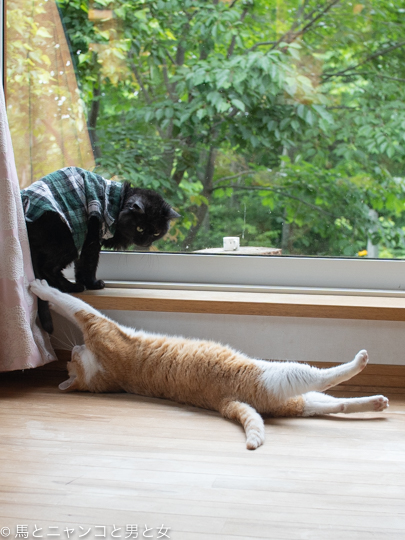 2020年07月14日 結論 「なかむら君」と遊びたい「まっちゃん」。 全身を使って誘うが「なかむら君」のリアクションは薄い。 カーテンを小道具にしたり 腹筋してみせたりするがノッてこない。 つまんねぇやつだなぁ〜 (;´Д`) 結論 ノリの悪いヤツとノリの良すぎるヤツは 合わな ... カテゴリ : 猫 コメント( 6 )