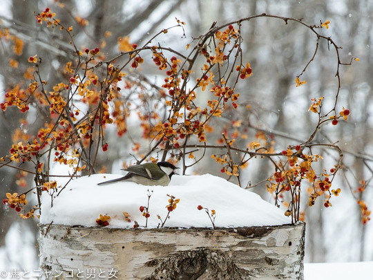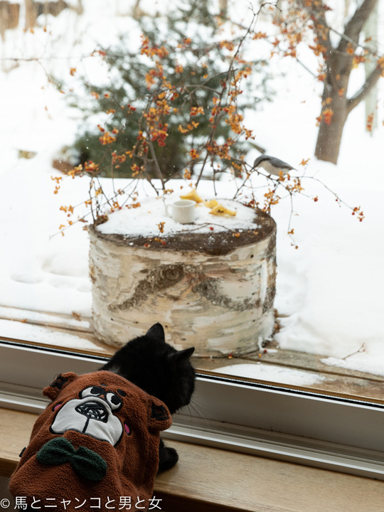 2021年01月09日 猫背 「食べてるとこ 見るなぁ〜!」 と怒ってるシジュウカラ。 猫背になってるオトスケ これで隠れてるつもりなのか? ここまで近づいても逃げないってことは なめられてるますな。 30cmほど雪が積もってツルウメモドキが映えるようになった。 昨日の記事でクーとマー ... カテゴリ : 猫 コメント( 7 )