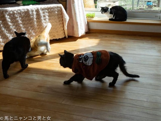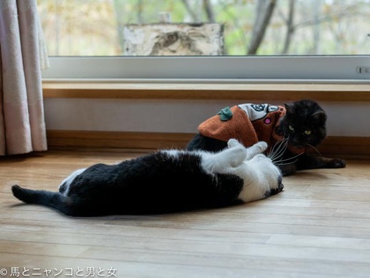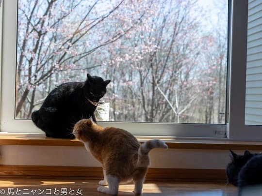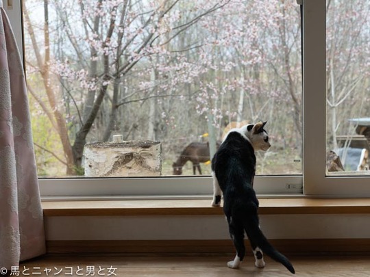 2021年05月28日 日毎に 珍しくクーとオトスケが窓辺でくっついてる。「お互い歳いったなぁ〜。」とでも話してるのか? と 足つった! クーが足を振りながら降りてきた。猫脚もしびれ切れたり つったりするんかな? 今朝も仔リスを見るために早起きして馬小屋へ向かう。 落下防止のために細 ... カテゴリ : 猫 , エゾリス コメント( 7 )