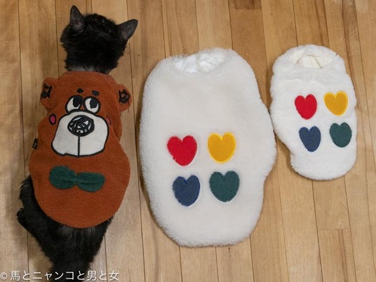 2021年05月24日 直送 先日 甲羅を干してる画像 を見てOさんが前開きになった服を送ってくれた。 ニャンコの服を買ったことがないので洗い替えになればということだったのだが 痩せてしまった「なかむら君」に小型犬用のLサイズは大きすぎたと残念なお知らせをした。 犬を飼ってる人にあげ ... カテゴリ : 猫 コメント( 17 )