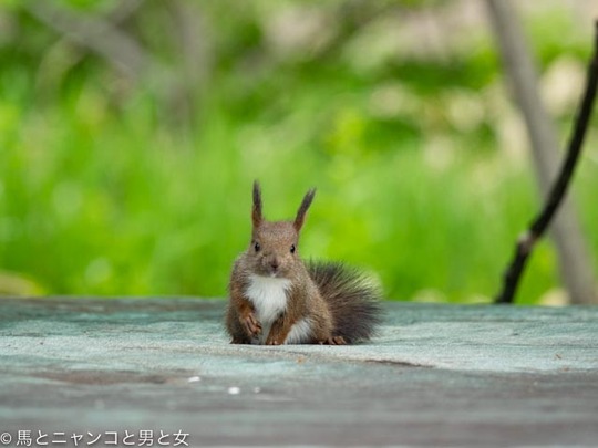 2021年06月04日 そんな子 物置の屋根に仔リスがおる!数日前に 引っ越して行った と思ってたがまだ残ってたんや。 かわいいけど 幼い。 兄弟とは体の大きさ・成長に差がついてしまったようだ。 置いていかれたかと心配しながら写真を撮ってたら木の上からエゾリスの警戒音が。クララが「早く来 ... カテゴリ : エゾリス , 猫 コメント( 9 )