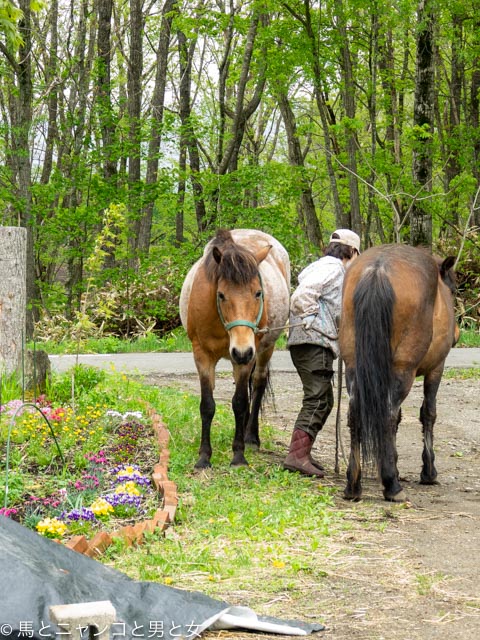 2021年06月05日 同じニオイ 放牧する時には馬の顔にモクシ(無口頭絡(むくちとうらく))という馬具を付ける。(グリーンのやつ) コレを掴んでさっと捕まえたりロープでつないだりできる。 先日「放牧おしまい! マロンおいで〜。」 と呼ばれて現れた姿が・・・ 力 抜けてしもた。 なんで ... カテゴリ : 馬 , 猫 コメント( 9 )