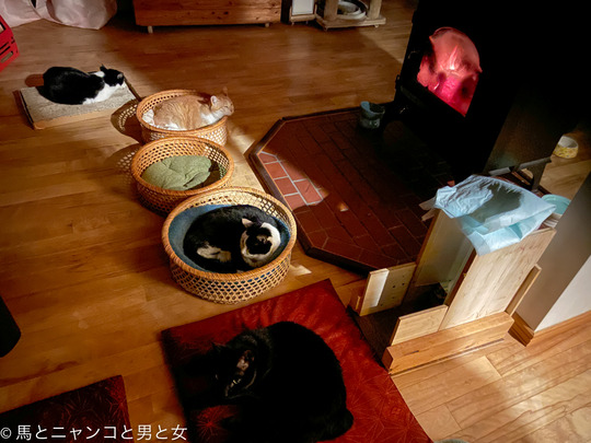 2022年10月10日 まったり ありがたいことに 昨夜のなんちゃっ亭は大忙し。 クタクタになって帰宅後 馬とニャンコのお世話をして2:00回ってしもた。 薪ストーブに吸い寄せられるように集まってきた御一行。深夜のまったりした時間も悪くない。 みんな おやすみ。 ちょっとバテてしもた。 (;´ ... カテゴリ : 猫 コメント( 9 )