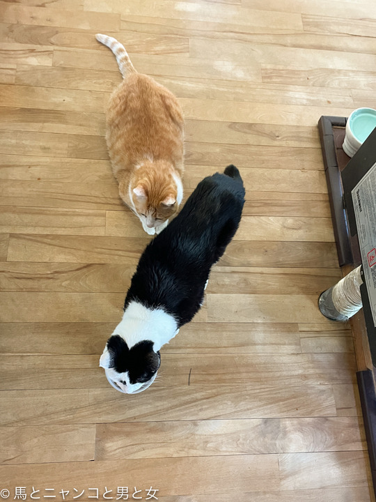 2022年10月24日 所有権 あさごはんを食べてるクーにピトッとくっついてる「まっちゃん」。 クーじいさんは昔から一気に食べることはなく小分けにして何回も食べる。 「まっちゃん」とマーボーは外生活の名残でがっついて一気に食べてよく吐く。 (;´Д`) 横取りしたら母ちゃんに怒られるのでクー ... カテゴリ : 猫 コメント( 8 )