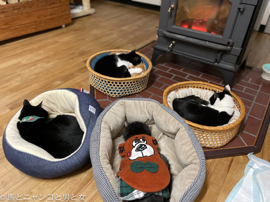 2022年12月10日 ダブル おかしい。 ほとんどの画像に写り込んでくる「まっちゃん」が居ない。「まっちゃん」が写ってれば全員集合なのに・・・ あっ マーボーの下敷きになってたんか。位置的にマーボーが上から覆いかぶさってったみたい。 薪ストーブの熱と「まっちゃん」の体温でダブルの温 ... カテゴリ : 猫 コメント( 5 )