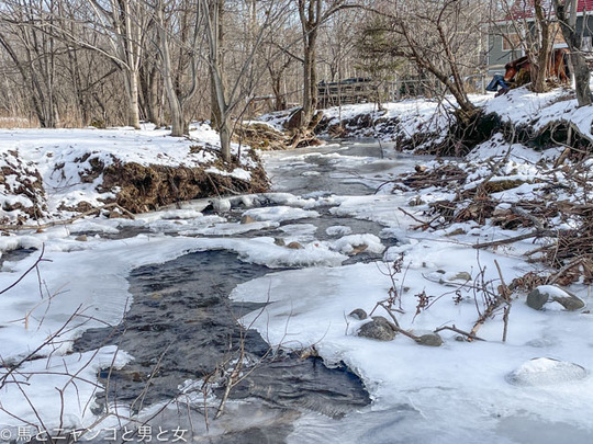 2023年12月19日 暑すぎる 昨晩 馬の世話をしてる時はマイナス9℃ 強風で体感気温はさらに低かった。 一晩で沢の凍結はかなり進んだが手前には流水が確認できた。 風も嫌いなマロン&プリンは後方に映る馬小屋から出るのを嫌がってた。 雪をかぶったキャリートラックの 「松本君」。 後ろのフ ... カテゴリ : 日記 , 猫 コメント( 18 )