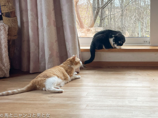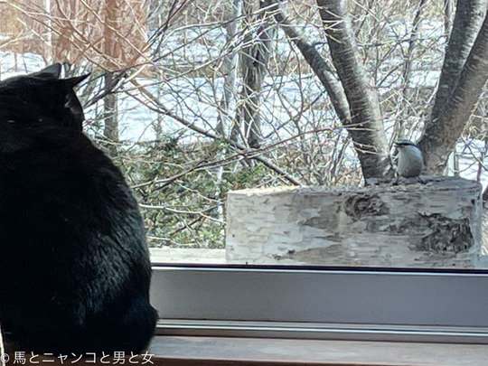 2024年04月08日 後ろのヤツ 週末の二桁気温で雪解けが進んだ。 窓辺に来る野鳥が少なくなったのは自分達でごはんを探しに行ってるみたい。 冬季の野鳥お助け食堂は店じまいかと思いきやしつこくねだってくる鳥も。 「まっちゃん」 君から言うたってくれ後ろのヤツに。 「閉店ガラガラ!」 ... カテゴリ : 猫 , 野鳥 コメント( 9 )