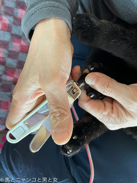 2024年04月07日 催眠術 絶賛衣替え中のニャンコ達 今朝は爪切り。 肉球を押され飛び出した爪をパチ〜ン。 σ(^^;)と共用の爪切りで・・・ 後ろ足を持ち上げられても従順な「オトじい」。ココまではニャンコあるあるな光景。 アレルギーなのか目やにがよく出るマロン&プリン。 右目に目薬さ ... カテゴリ : 猫 , 馬 コメント( 11 )