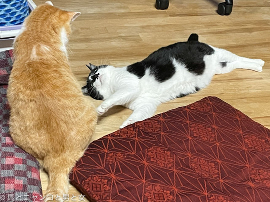 2024年06月20日 挑発 「かかっといで!」 と挑発するマーボーを無視する「まっちゃん」。 「まっちゃん」の判断は正しい。 手を出すと返り討ちに合うのがいつものパターン。 なおもチョイチョイとあおってるマーボーのポテポテのお腹がかわいい けどもや触らぬネコに祟(たた)りなし な ... カテゴリ : 猫 コメント( 9 )