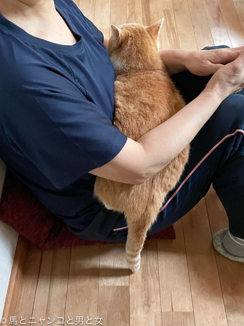 2024年06月21日 何分の一 夜の馬の世話を終えて部屋に入ってきたら 「まっちゃん」が「抱っこして〜」と。 彼のうまいところは 抱き上げると首を傾げてピトっと もたれかかってくるところ。こんなことされるとついつい撫でる時間が長くなってしまうのだ。 ちなみに外作業で着ているこの服の色は ... カテゴリ : 猫 コメント( 14 )