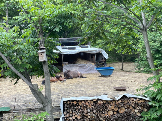 2024年06月23日 チョロチョロ 老眼さんいらっしゃいのコーナーです。 マロン&プリンがまどろんでる右下に居てますな。 ズームしていくと ほら見えた。 キセキレイがチョロチョロ邪魔しに行ってるんですな。んなもん見えるかぁ〜!っていう声が聞こえてきそうですな。 この時のヒナかな? 悪気はない ... カテゴリ : 馬 , 野鳥 コメント( 9 )