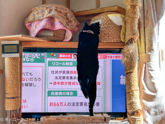 2024年09月09日 昨日まで なんちゃっ亭の週末営業を終えクタクタ 遅めの朝食を食べてた。 何故か「オトじい」がテレビの正面から登ろうともがいてる。 いつもなら画面左から猫ちぐらにアクセスしてくるのに・・・ ひょっとして 認知機能が低下してるのか?何度かトライしたけど結局登れず諦めよ ... カテゴリ : 猫 コメント( 9 )