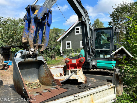2024年09月11日 変身 今夏も暑くて外の作業を思うように進められなかった。 ようやく涼しくなってきたので懸案事項の一つバックホーの「加トちゃん」の アタッチメントの交換をば。 「加トちゃん」はエアコンなし なんちゃっ庭はただでさえ虫が多い。 窓を開けてると蚊・アブ等の吸血虫がい ... カテゴリ : 日記 , 猫 コメント( 18 )