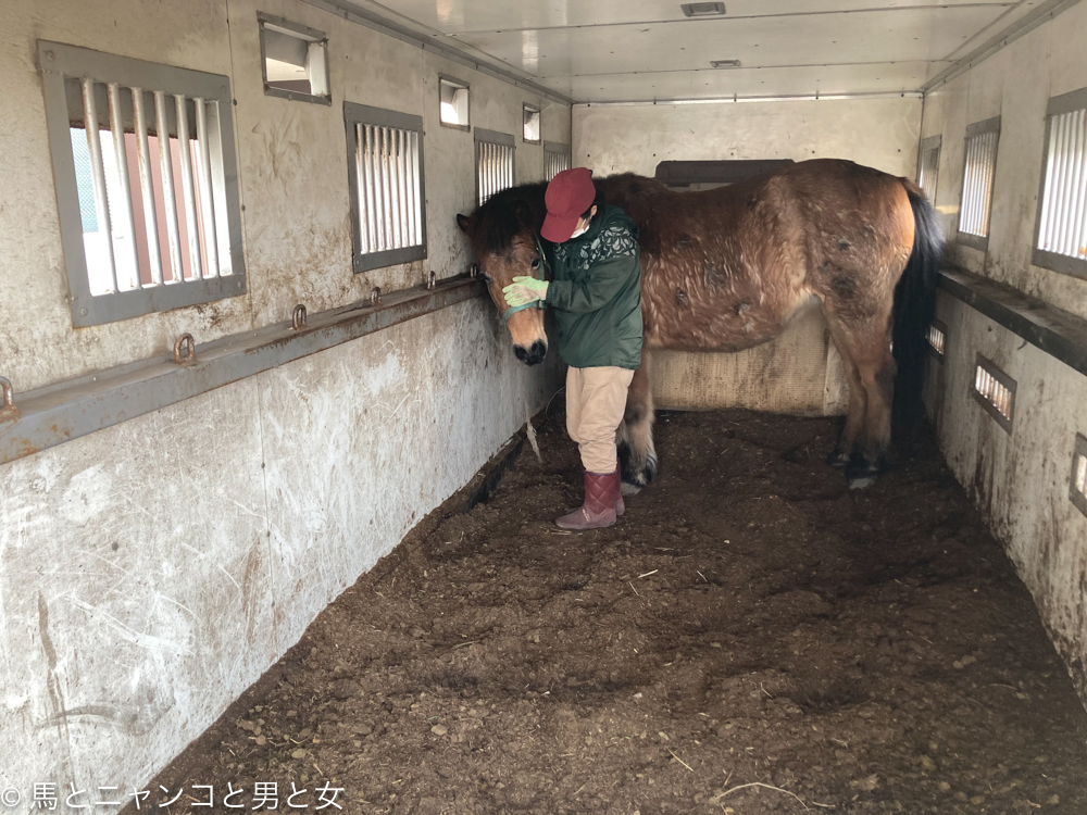 ちこ太郎になだめられてるの図。 ほんまもんの馬運車はええなぁ~。