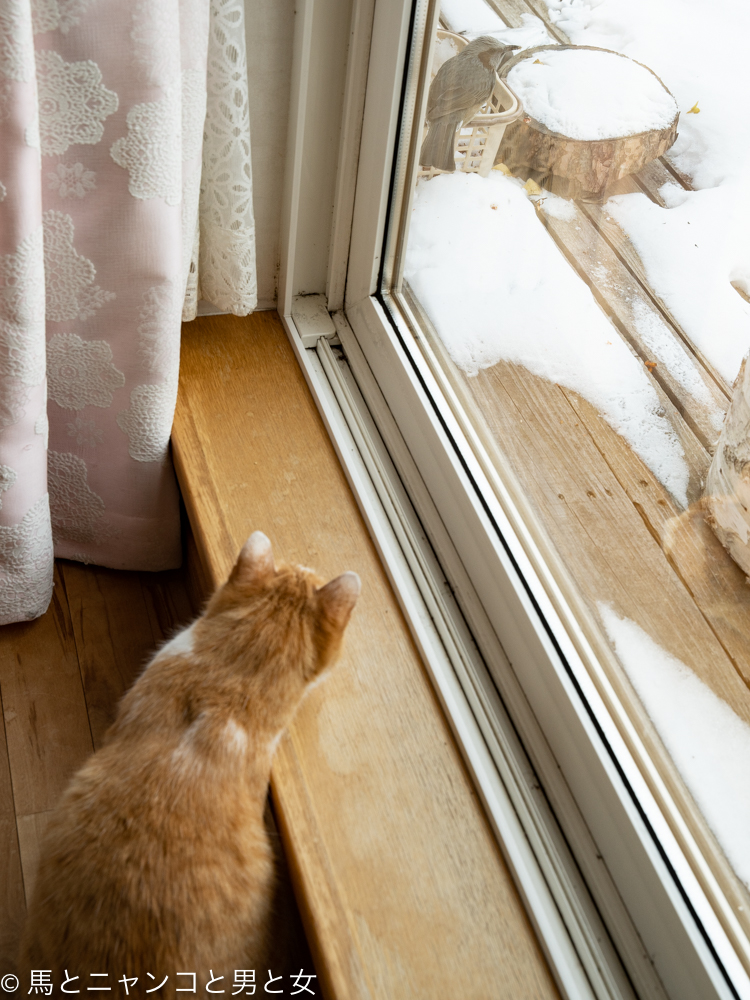 2021年01月23日 体隠して 背骨がS字にクネってる「まっちゃん」。 そ〜っと覗いてみると・・・ヒヨドリに見つからんようにしてるみたいやけど たぶん顔は丸見えやと思うねんけど・・・ 体隠して顔隠さず。 ですな。 (=^・^=) クレジット決済で カレンダー購入希望の方は ↓をクリック振り込みで カレンダー購入希望の方は ↓をクリックブログランキングに参加してます。 好きな猫の顔をクリックして応援してや~。 「猫」カテゴリの最新記事 < 前の記事次の記事 > コメント コメント一覧 (7) 1. ラー 2021年01月23日 01:06 深夜に更新、何事かとビックリしました! でも平和な写真でよかった、よかった(^^) 今日も1日お疲れさまでした‼︎ 0 umanyan がしました 2. ぽぅ 2021年01月23日 01:37 いつもと違う時間にupされたから何かあったんかと思ってドキドキしながら見たら、間違えてupされたかな? あー、焦ったー(;´Д`A 0 umanyan がしました 3. 眠れる森の微女 2021年01月23日 09:20 ぷっ!(>v<) 0 umanyan がしました 4. ちー 2021年01月23日 09:55 ど、どうしたんですか? 夜中に更新なんて! 舞絵は夜中だったけど、最近は昼間だったのに~ 予約しようとして間違えた? ちょっと多く飲んじゃって盛り上がって更新しちゃった? 0 umanyan がしました 5. ジャックガブリエル 2021年01月24日 05:33 後ろ姿はかわいいけど、今もハンターの目になってるのかな? 0 umanyan がしました 6. ムウ 2021年01月24日 07:14 まっちゃん、ヒヨドリさんを見てたのね。 ほんとS字になってますな。 上手に隠れてるつもりですよ。 やっぱまっちゃんの後頭部は最高やねぇ。 0 umanyan がしました 7. まっちゃんラブ 2021年01月24日 10:09 ヒヨドリ型脊柱側弯症、、(^-^) 0 umanyan がしました コメントフォーム 名前 コメント 記事の評価 リセット リセット 顔 星 情報を記憶 コメントを投稿する