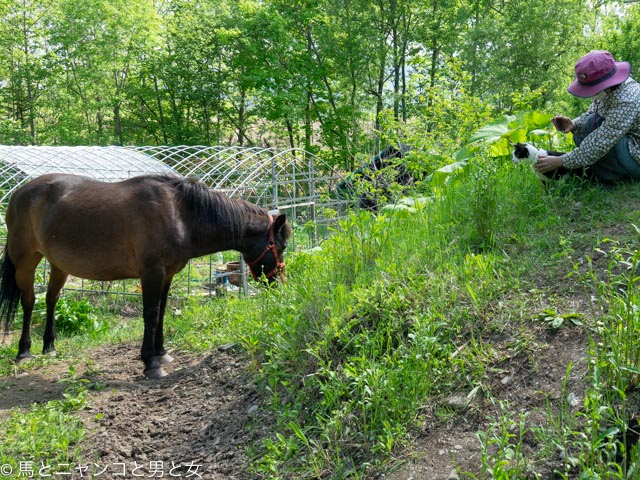 ちょうど家の周りの除草をしてたマロンがやってきてご挨拶。