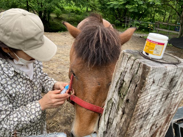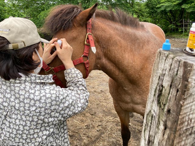 馬はとても臆病なので、そんなにおとなしく、目薬さすなんて、ビックリです。馬と飼い主さんという関係ではない、親子以上のつながりなんですね💘