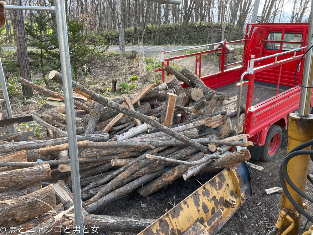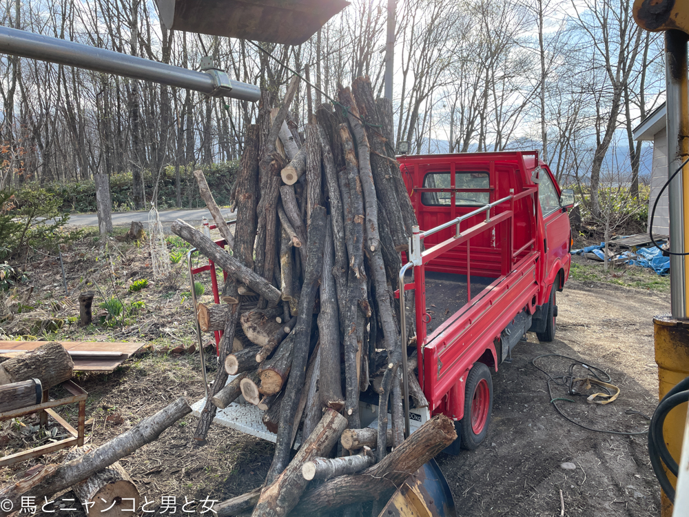 丸太を降ろすのが大変なんで積む前にワイヤーを床面に回しといた。