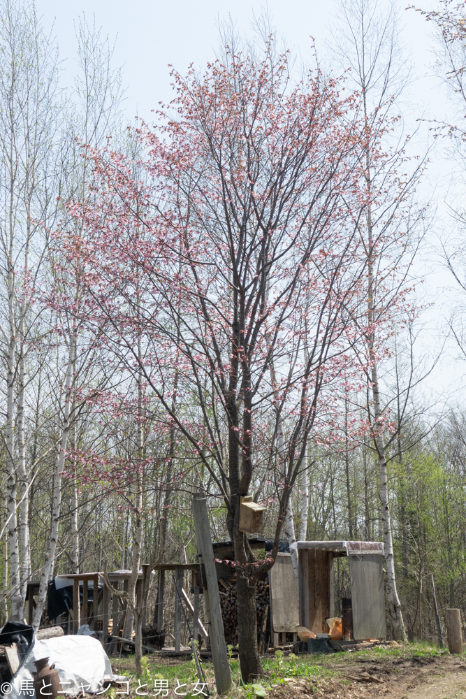 桜が咲いて いい感じになったシジュウカラの巣箱。
