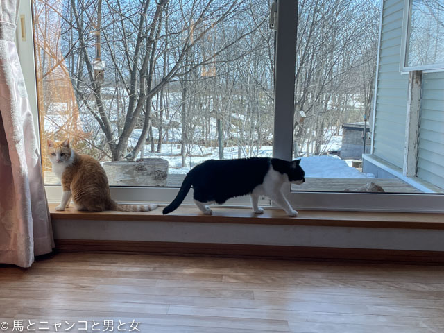 2024年04月08日 後ろのヤツ 週末の二桁気温で雪解けが進んだ。 窓辺に来る野鳥が少なくなったのは自分達でごはんを探しに行ってるみたい。 冬季の野鳥お助け食堂は店じまいかと思いきやしつこくねだってくる鳥も。 「まっちゃん」 君から言うたってくれ後ろのヤツに。 「閉店ガラガラ!」 「へ?」 畑に出てくる虫食べて恩返しよろしく。 ココをクリック ブログランキングに参加してます。 好きな猫の顔をクリックして応援してや~。 「猫」カテゴリの最新記事 < 前の記事次の記事 > コメント コメント一覧 (9) 1. たまお猫命 2024年04月08日 11:07 マーボーの楽しみは残しておかなくっちゃ( ´艸`) 0 umanyan がしました 2. むんと 2024年04月08日 11:08 はっ!! もしや、この子はなかむら君の生まれ変わり?と言われたゴジュウカラでは? 0 umanyan がしました 3. はぁーちゃん 2024年04月08日 16:09 オトまつコンビの仲良しぶり、いいねえ。癒されるー。 鳥食堂にお客さんが? あらー、閉店できないわね。美味しいのね。 粘り勝ちよ、ガンバレ! 0 umanyan がしました 4. ぽっぽ 2024年04月08日 16:32 次はエゾリス食堂になりませんかねぇ・・・笑 オトマツコンビ、本当に仲良しですね~ ずっと見ていたい。 0 umanyan がしました 5. OK 2024年04月08日 23:05 「後ろのヤツ」 *ガラガラと 閉店された ゴジュウカラ? 「ココをクリック」 *仲よくね オトまつコンビ 絹婚式? *これからも ずっと一緒に お願いよ 0 umanyan がしました 6. ムウ 2024年04月09日 00:44 野鳥さんも、自分達でごはん探しに行ってるんだねぇ。 野鳥お助け食堂、いいネーミング! かじやん、名前つけるのうまいよね。 おや!まだごはんをもらいたい鳥さんがいましたな… オトまつコンビ、いつまでもずっと仲良しでいてね。 2ニャン見てたら幸せな気持ちになりますね。 0 umanyan がしました 7. ぽにゃつん 2024年04月09日 04:48 なんと!食堂はずーっと開いてるんだと思ってました。 オトちゃんまっちゃんコンビが12年。 自分が年取ったのを再確認しましたよ。 0 umanyan がしました 8. パオロンの母 2024年04月09日 07:27 「閉店ガラガラ」って、ナイスボケ! 今年も「暖かい」がなく、「暑い」に突入しそうな予感な東海地方。 なんちゃっ邸を見ていると、穏やかな天気の様子が羨ましい。 野鳥さん達もしっかり土の中の虫を食して、自然のサイクルを しっかり回して欲しいです。 0 umanyan がしました 9. ジャックガブリエル 2024年04月09日 08:41 12年になるのですか。 まだまだ元気でいてほしいですね。 0 umanyan がしました コメントフォーム 名前 コメント 記事の評価 リセット リセット 顔 星 情報を記憶 コメントを投稿する